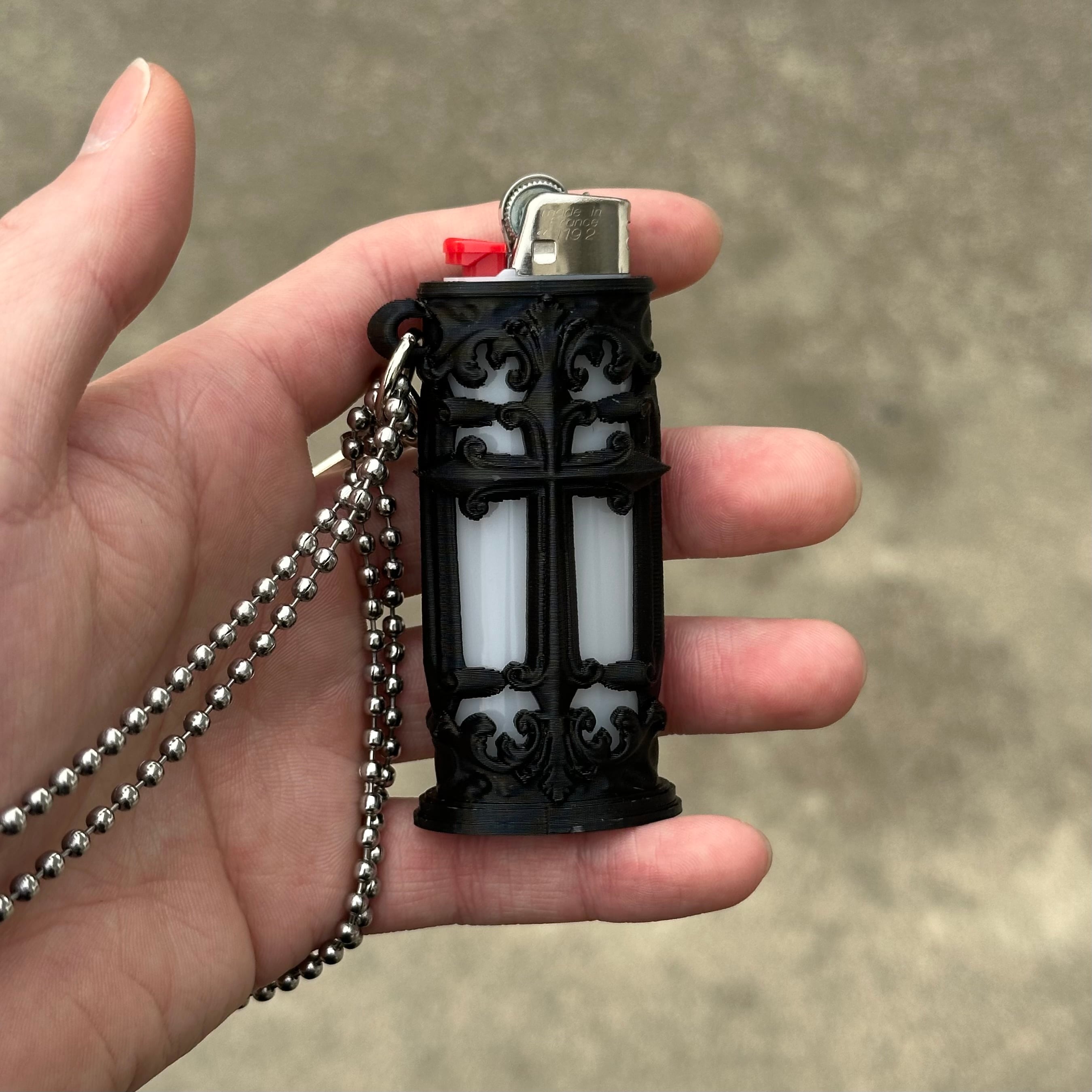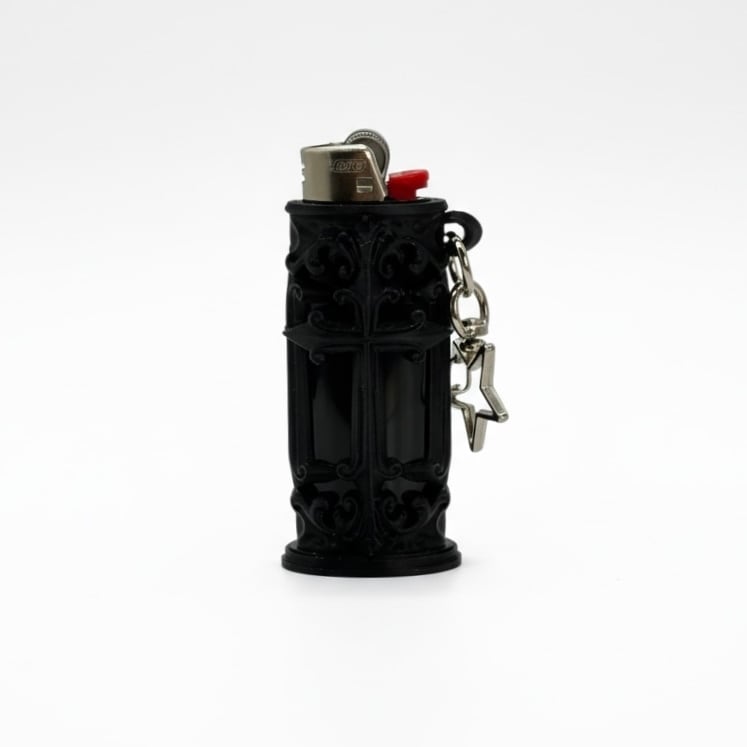 Cross Lighter Keychain No.1 (Black) ※ライターは付属しておりません。 クロスモチーフのライターケース。キーチェーンとしてご利用いただけます。 FDM方式の3Dプリンタによって造形されています。 ■ 素材(本体のみ) PLA ■ サイズ(本体のみ) 横:約4.0㎝ 縦:約2.5㎝ 高さ:約7.0㎝ ■ 対応商品 BICライター J26 ご注文前には、「ABOUTページ(ご購入前に必ずお読みください)」をご一読ください。